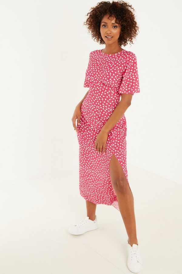 Pink Heart Print Midi Dress Quiz Clothing