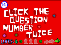 Click where the answer can be found for that. Question 14 of The Impossible Quiz 2 contains no actual question or task on screen. 10 letters in 9.